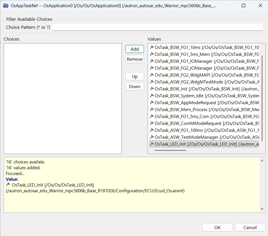 AUTOSAR 설정 파일(ARXML)에서 OsTask_LED_Init Task를 생성하였다.