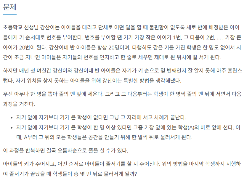 이 문제는 학생들의 키를 앞에서부터 한 명씩 줄 세울 때,