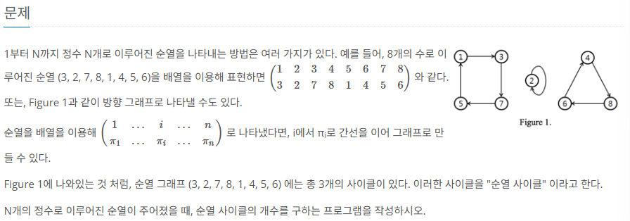 이 문제는 순열이 주어졌을 때, 그 순열에 포함된 사이클의 개수를 구하는 문제이다.